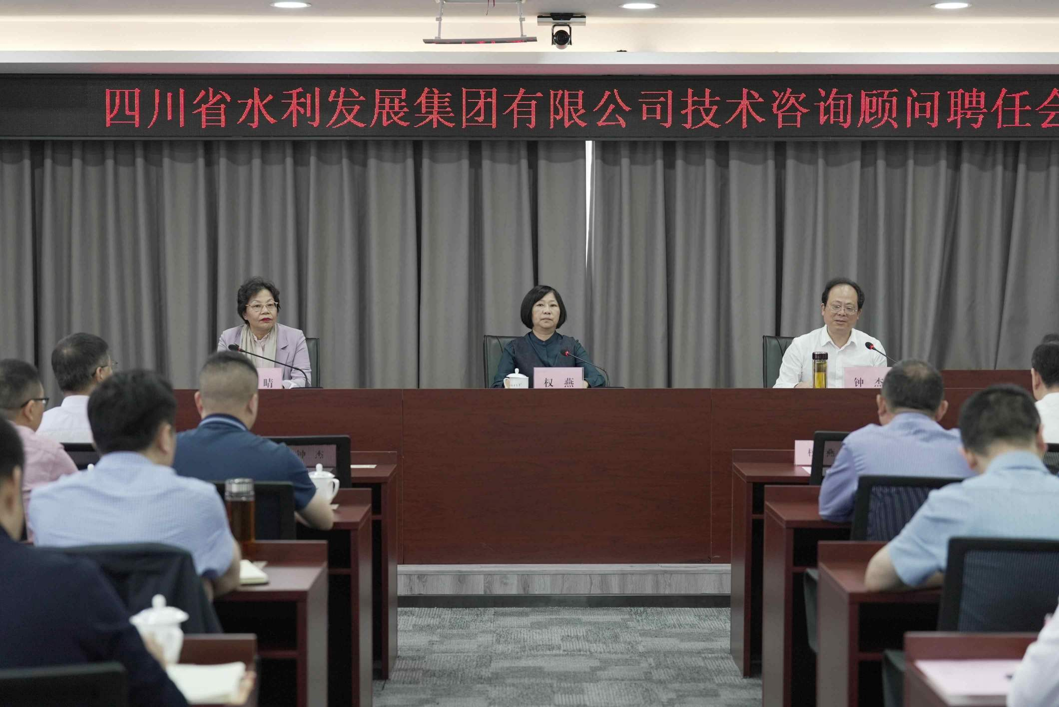5月18日,集團黨委書記、董事長鐘杰在總部23樓會議室主持集團大會,聘任楊晴教授為集團技術咨詢顧問。水利廳總規劃師權燕出席會議并致辭。集團領導班子成員及集團中層以上干部參加會議。工程局公司、亭子口公司、向家壩公司中層以上干部在分會場參加視頻會議。