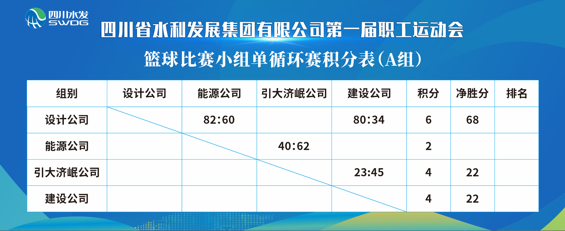 12月5日上午9時,隨著裁判的一聲哨響,集團第一屆職工運動會預(yù)賽階段正式開始,首先開賽的是集團總部對陣投資公司和設(shè)計公司對陣能源公司的籃球小組循環(huán)賽,未來3天,8支籃球隊將爭奪4個進入排位賽的名額。賽前,集團黨委委員、工會主席唐克飛前往成都市水井坊錦江體育公園為參賽運動員加油鼓勁。賽場上水發(fā)健兒你追我趕,傳球、防守、運球、擋拆、上籃……對戰(zhàn)雙方開啟了緊張的進攻模式,比分交替上升,精彩瞬間讓人目不暇接,贏得全場觀眾陣陣掌聲。