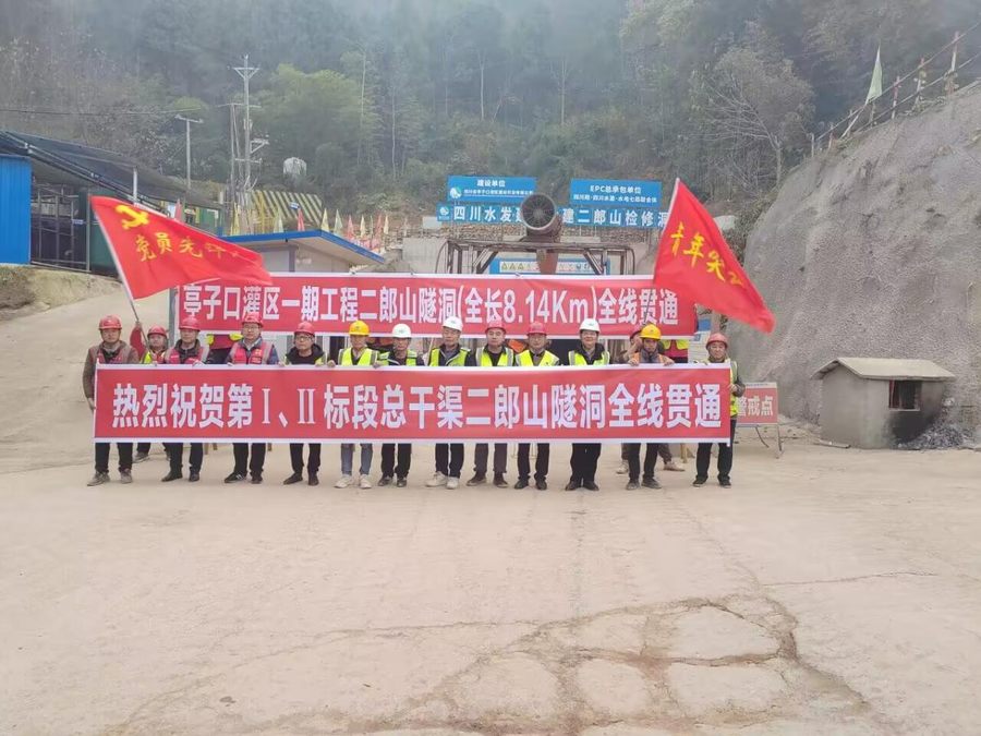 2024年1月7日,由建設公司承建的亭子口灌區一期工程Ⅰ標二郎山隧洞順利貫通。二郎山隧洞全長8140.73米,建設公司承建的二郎山隧洞部分總長7368.45米,圍巖類別多為Ⅲ、Ⅳ、V類。作為Ⅰ標段總干渠第二長的隧洞,它的全面貫通標志著進入2024年,施工高峰正式由開挖轉序為襯砌,為順利邁向下一個施工階段,打開建設新局面開好頭、起好步。