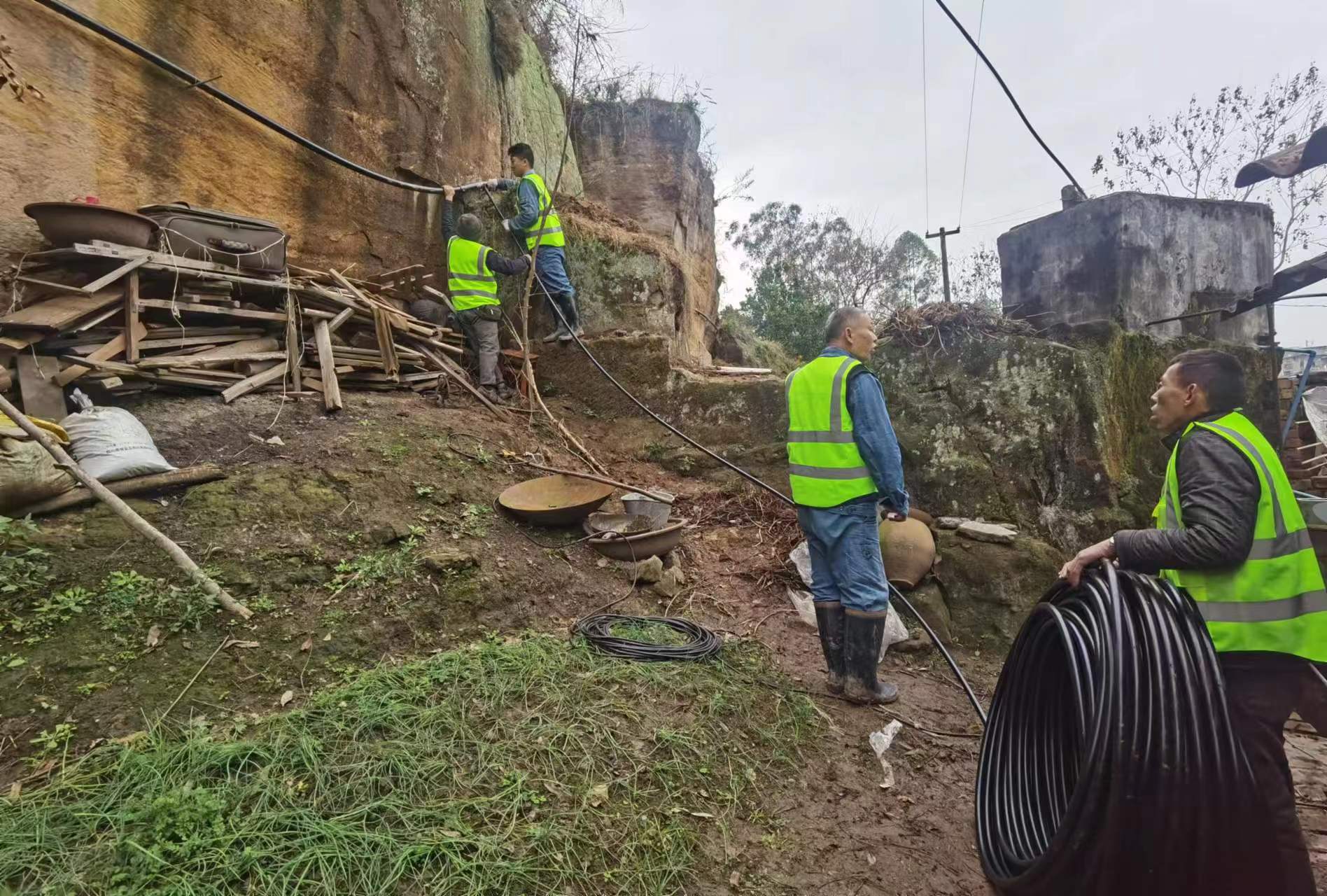 1月24日,井研縣城鄉(xiāng)一體化供水到村到戶管網(wǎng)建設現(xiàn)場,施工人員正在以飽滿的干勁投入到鄉(xiāng)村供水管網(wǎng)建設中。