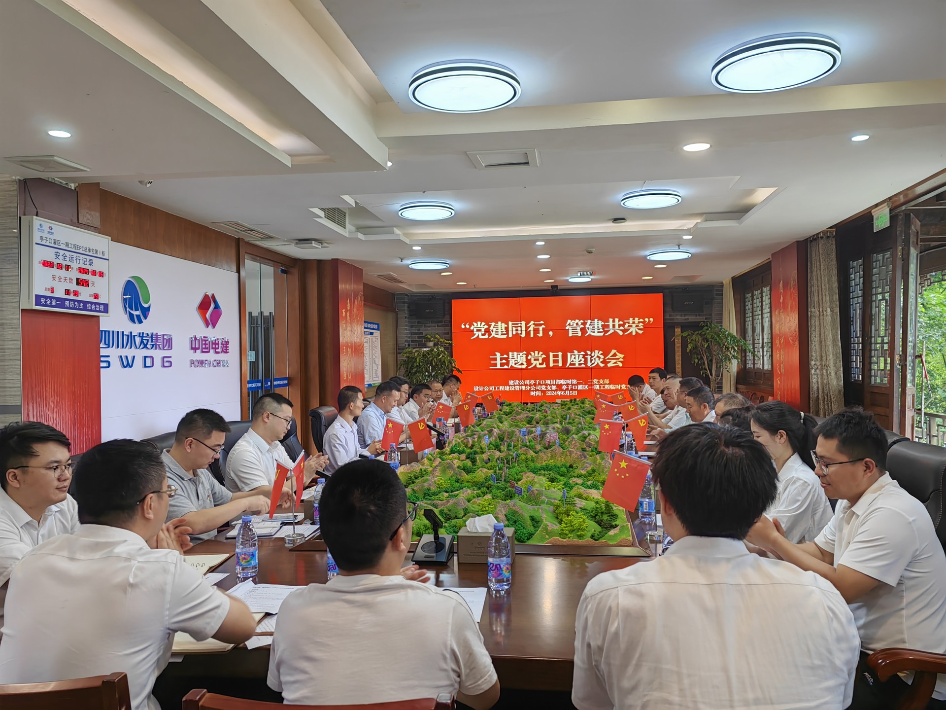 為深入學習貫徹習近平新時代中國特色社會主義思想,加強在業務和技術上的交流互動,以黨建聯動凝聚各方力量,6月5日,建設公司亭子口項目臨時第一、二黨支部與設計公司工程管理分公司黨支部、亭子口項目臨時黨支部聯合開展“黨建共行,管建共榮”主題黨日活動。