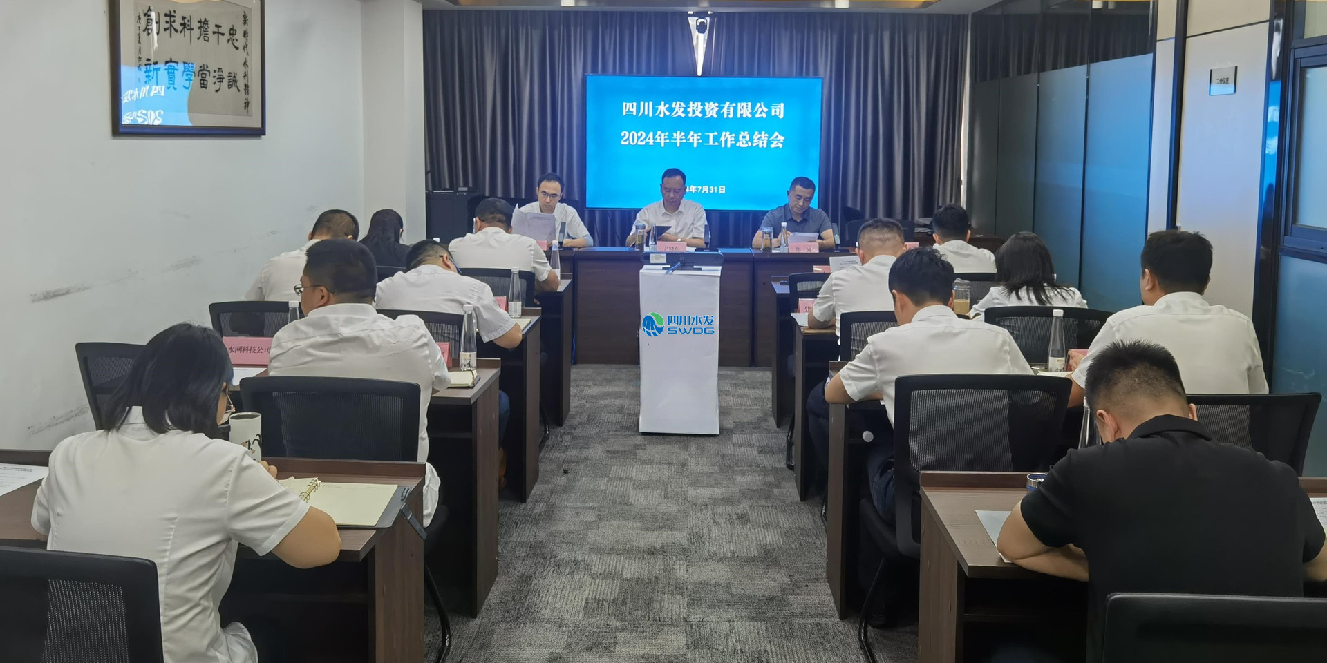 投資公司領導班子成員、各部門負責人,水網科技公司、大岷管業公司領導班子成員在主會場參會。井研興業公司、三臺都宏公司、圣源水業公司領導班子成員和部門負責人以視頻形式在分會場參會。